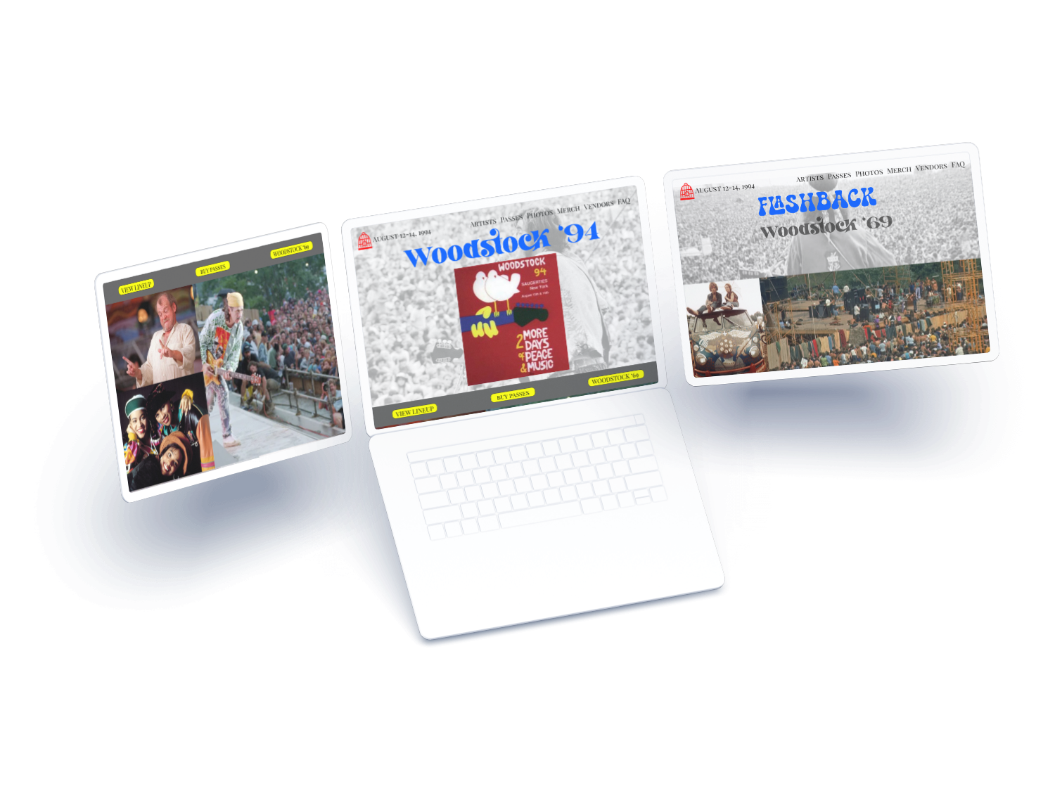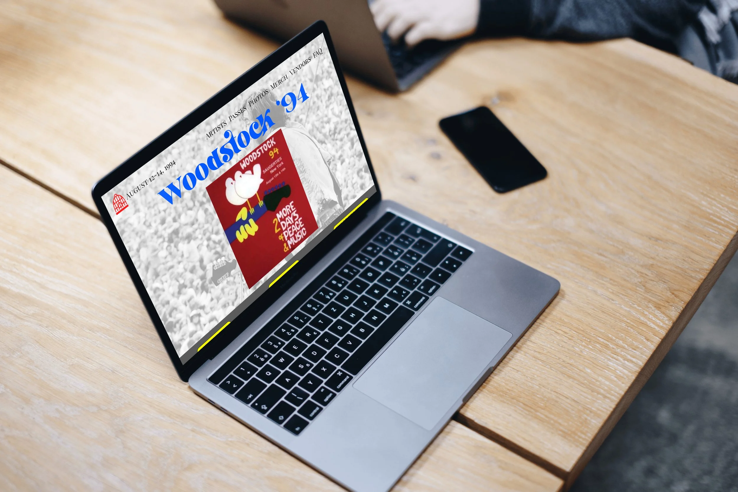 For this concept, I created a homepage and photo page for Woodstock 1994